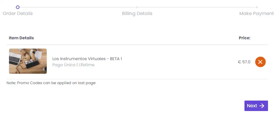 Paso 5: en la siguiente página podremos ver la cesta de la compra, para continuar haremos click en «Next»