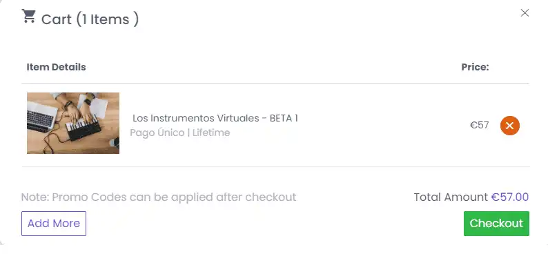 Paso 3: nos saldrá una ventana donde podremos ver un resúmen de la compra, para continuar haremos click en «Checkout»